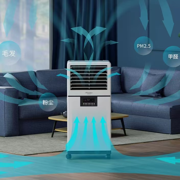 4.细节表现:睡眠模式运行噪音分贝,几乎无噪音,不影响休息;无出雾设计,搭配加湿器使用时,不会改变加湿形态,不干扰加湿效果;附加功能包含空气质量数显、隐藏式万向轮移动,实用度高,方便在不同空间灵活使用。